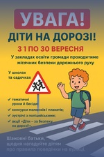 Щороку з 1 по 30 вересня в Україні традиційно проходить місячник безпеки дорожнього руху «Увага! Діти на дорозі».